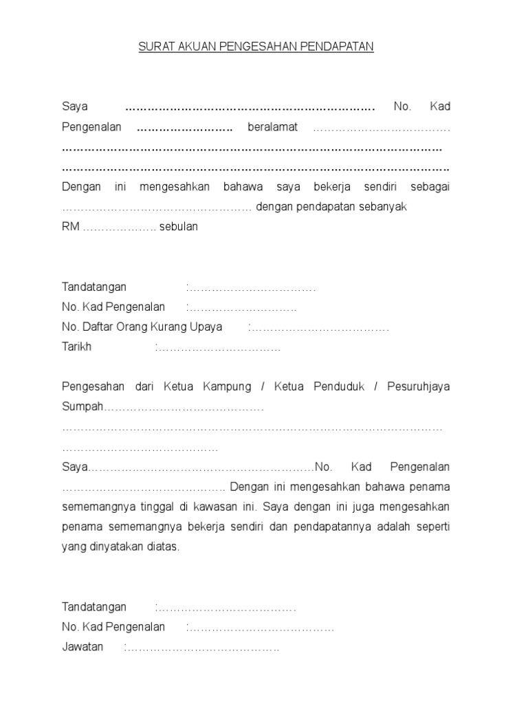 Akuan Contoh Surat Pengesahan Pendapatan Bekerja Sendiri