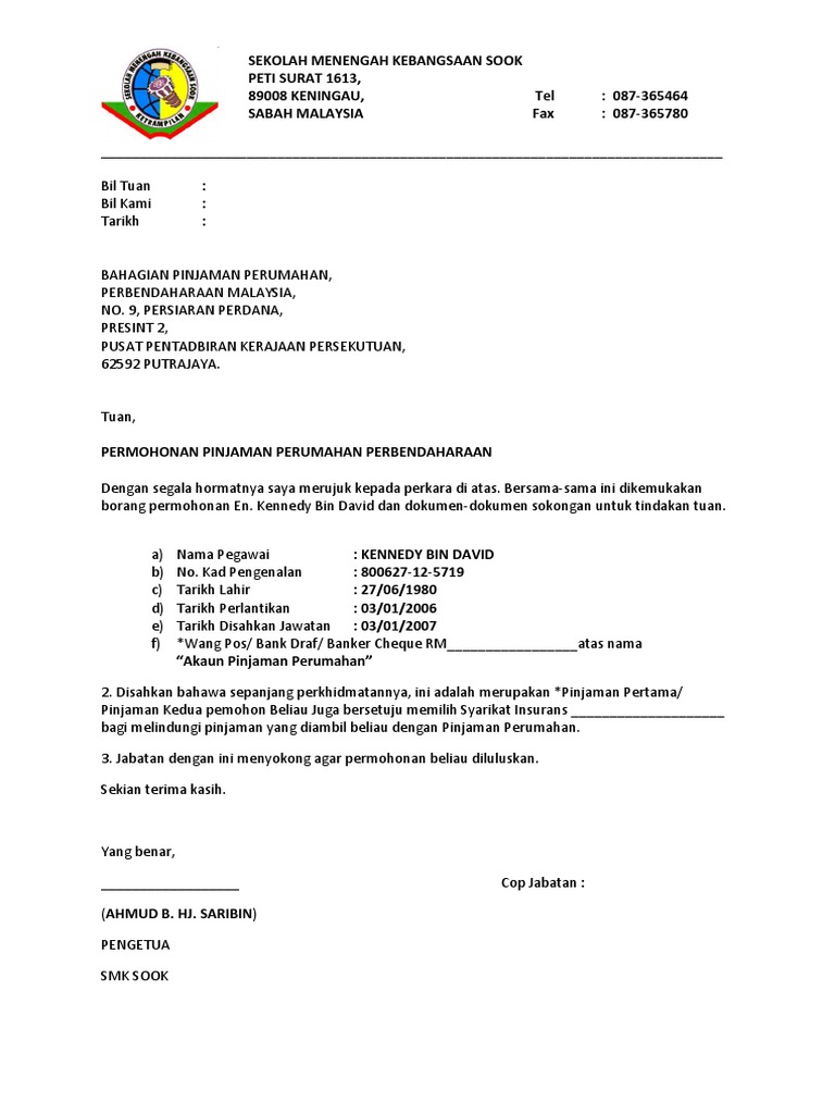 Surat Iringan Pinjaman Perumahan Kerajaan