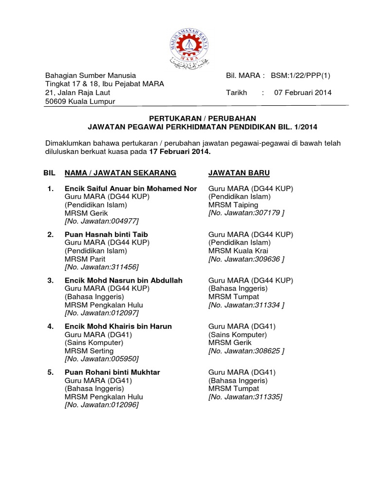 Pertukaran Perubahan Jawatan Pegawai Kumpulan Pengurusan Profesional Bil 12 2018 Pages 1 1 Text Version Anyflip