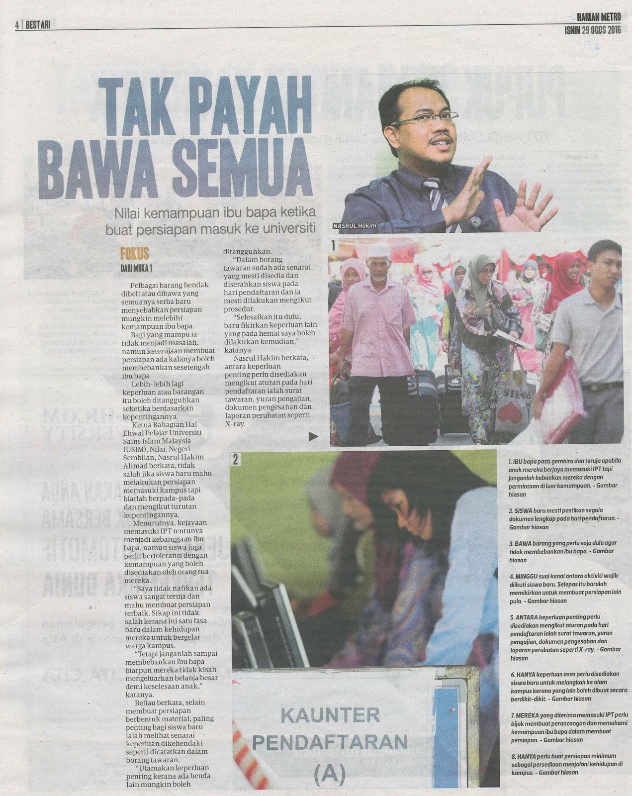 Gen Upsi Upsi Dalam Media Harian Metro 29 Ogos 2016 Utamakan Yang Utama