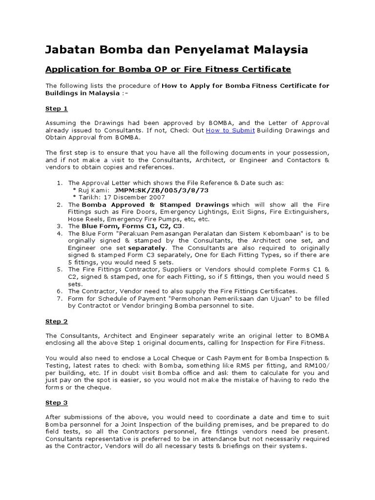 Fire Certificate Malaysia Application Requirement By Jabatan Bomba