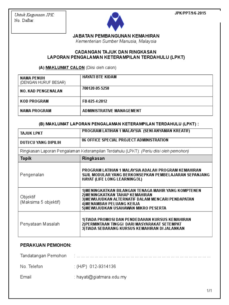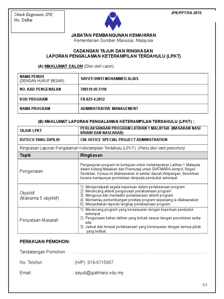 Borang Lpkt Cadangan Tajuk Contoh 1 29 6 2015