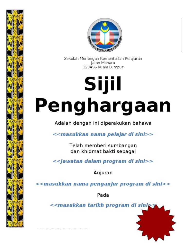 Sijil penghargaan dikurniakan kepada pn. The file extension pdf and ranks to the documents category. Sekolah kebangsaan gembut jalan tanjung sedili kota tinggi jba 3051 sssiiijjjiiilll pppeeennnggghhhaaarrrgggaaaaaannn dengan sekalung. Penghargaan kepada penceramah teknik menjawab soalan pmr spm 2013 sijil dan cenderahati kepada penceramah matematik pmr pn hazrin mat liki.