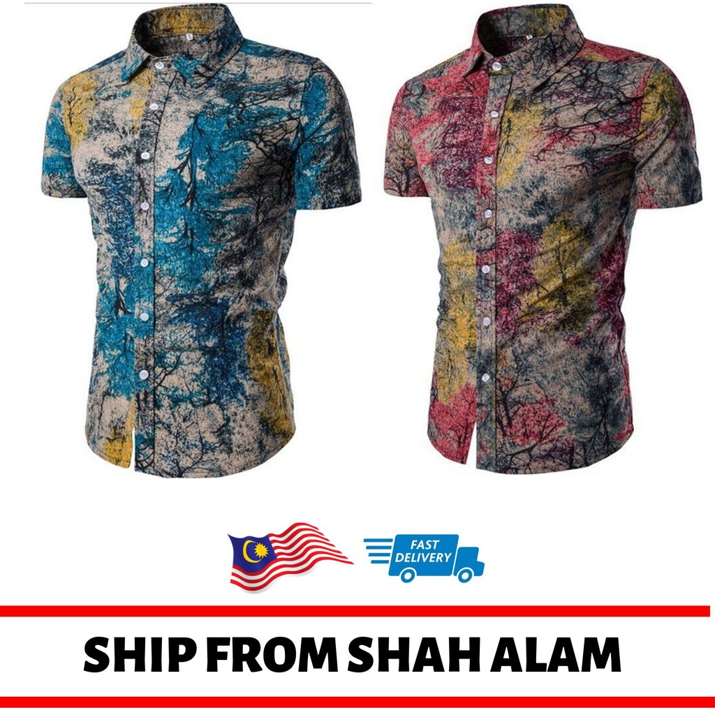 Baju Kemeja Lengan Pendek Lelaki Corak Batik Bunga Best Design Shopee Malaysia