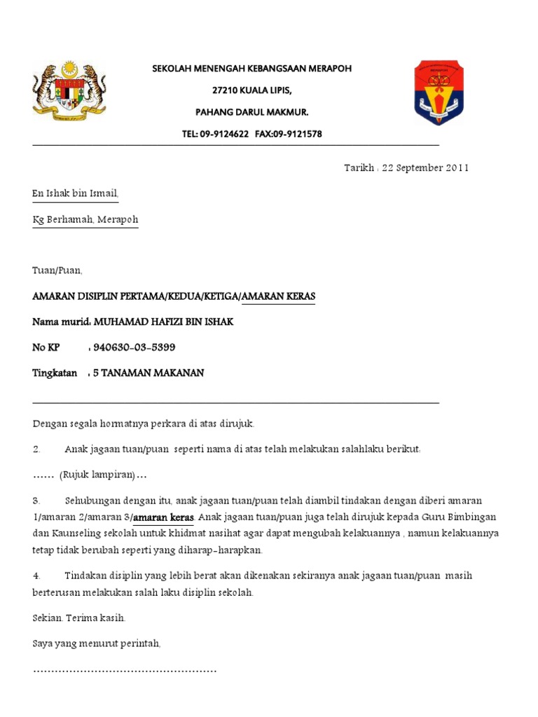 Disiplin Contoh Surat Amaran Pertama