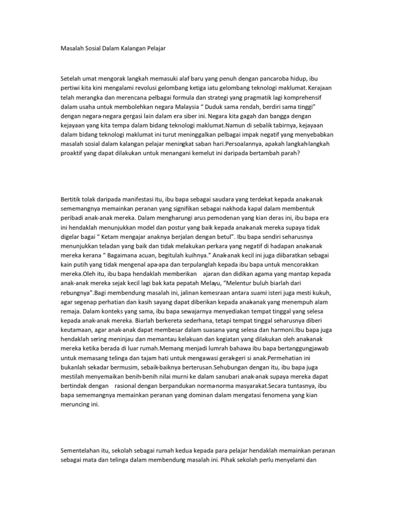 Masalah Sosial Dalam Kalangan Pelajar