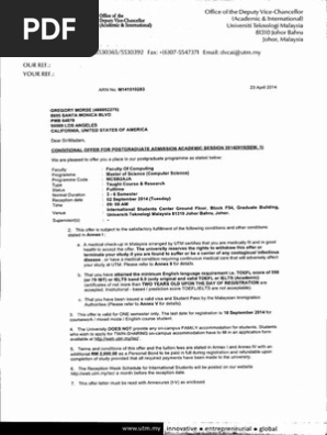 Universiti Teknologi Malaysia Utm Offer Letter Travel Visa Payments