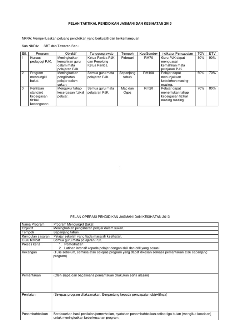 Pelan taktikal dan operasi pendidikan jasmani. Pelan operasi 1 pelan strategik panitia pj 1 pelan strategik pendidikan jasmani 1 pelan taktikal pendidikan jasmani 1 pembunuh senyap 1 pendidikan jasmani 1 pendidikan jasmani ubahsuai 1 pentaksiran kssr pj tahun 3 1 penyakit merbahaya 1 penyakit tidak berjangkit ncd 1 perlaksanaan segak 1 physical education in class. Contoh minit mesyuarat panitia pjk 4. Kepada ketua panitia pendidikan jasmani yang ingin mendapatkan contoh pelan strategik pendidikan jasmani boleh dapatkannya di sini. Panitia pendidikan moral 2013 nama program.