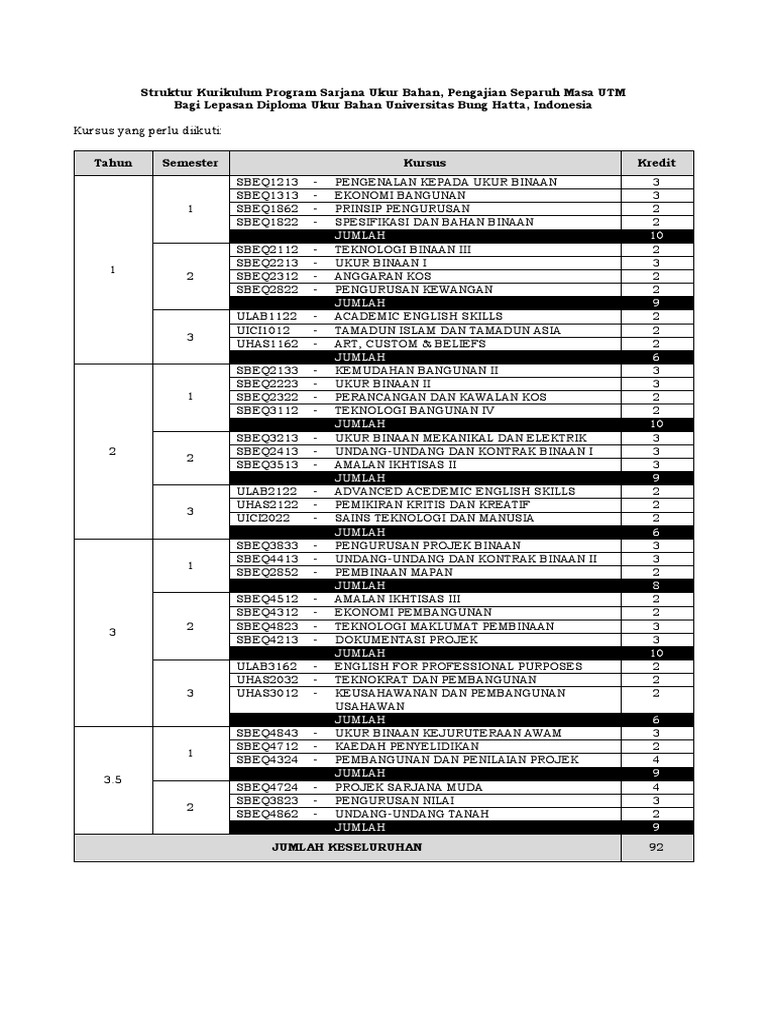 Senarai Program Pengajian Utm Ijazah Sarjana Muda Yang Ditawarkan