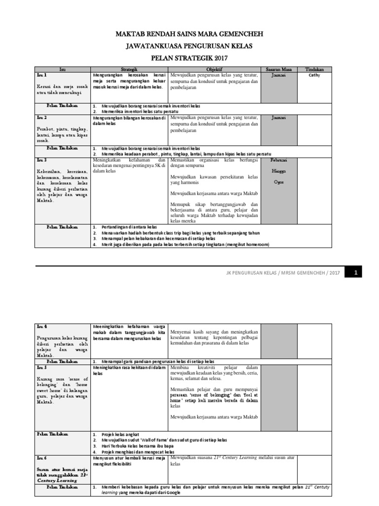 Maktab Rendah Sains Mara Gemencheh Jawatankuasa Pengurusan Kelas Pelan Strategik 2017