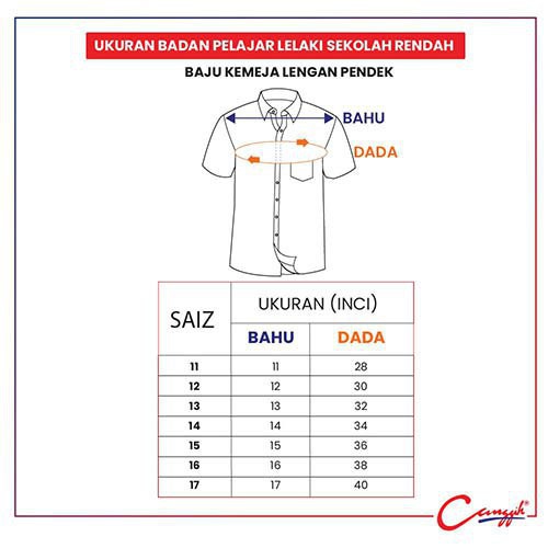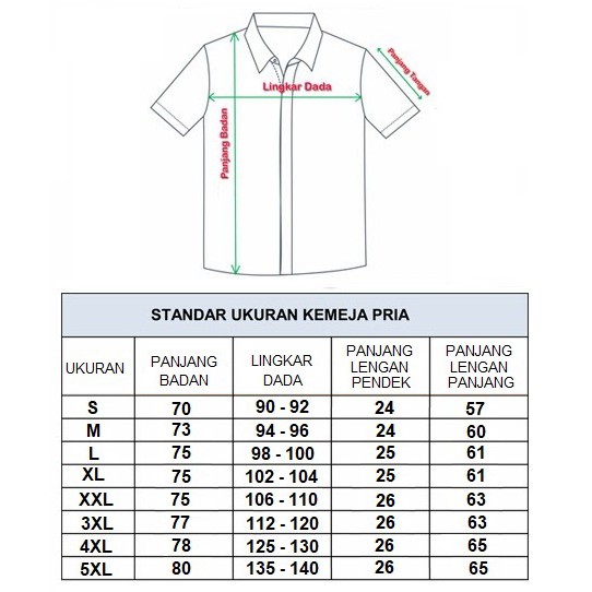 Ukuran Baju Kemeja Lelaki Lengan Pendek